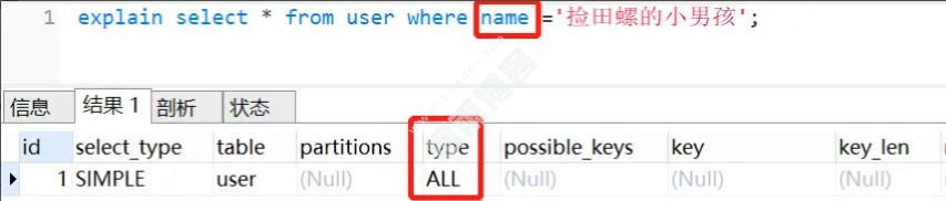 有一个联合索引 idx_userid_name,我们执行这个SQL,查询条件是 name,索引是无效: