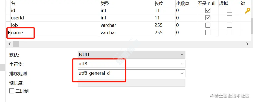 user表的name字段编码是utf8mb4,而user_job表的name字段编码为utf8。