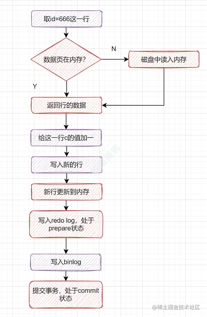 id=666这一行。如果这行所在的数据页本来就在内存中的话,就直接返回给执行器。如果不在内存,就去磁盘读入内存,再返回。执行器拿到引擎给的行数据后,给这一行