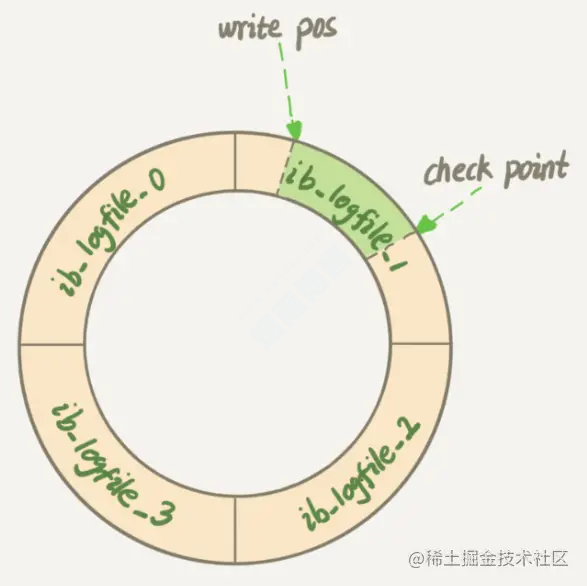 redo log大小是固定,且是环型写入的,如下图(图片来源于MySQL 实战 45 讲):redo log写满了,要刷脏页。这种情况要尽量避免的。因为出现这种情况时,整个系统就不能再接受更新啦,即所有的更新都必须堵住。内存不够了,需要新的内存页,就要淘汰一些数据页,这时候会刷脏页