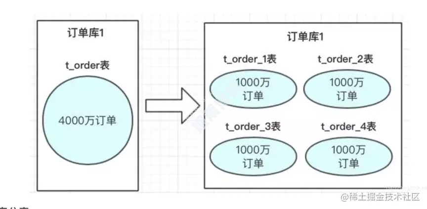 定义:数据表行的拆分,通俗点就是把数据按照某些规则拆分成多张表或者多个库来存放。分为库内分表和分库。 比如一个表有4000万数据,查询很慢,可以分到四个表,每个表有1000万数据。