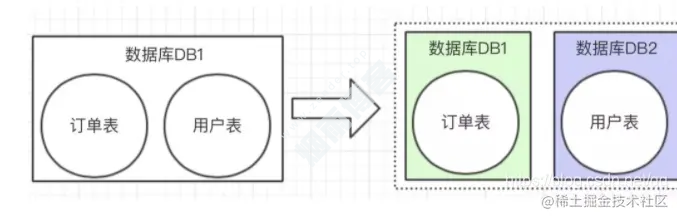 定义:列的拆分,根据表之间的相关性进行拆分。常见的就是一个表把不常用的字段和常用的字段就行拆分,然后利用主键关联。或者一个数据库里面有订单表和用户表,数据量都很大,进行垂直拆分,用户库存用户表的数据,订单库存订单表的数据。
