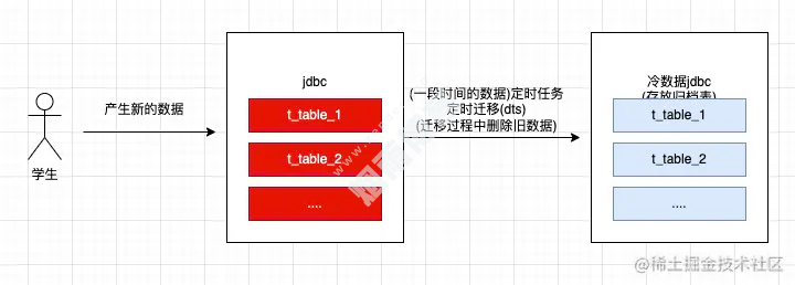 为什么要冷热归档:其实原因和方案二类似,都是降低单表数据量,树的高度变低,查询经历的磁盘io变少,则可以提高效率