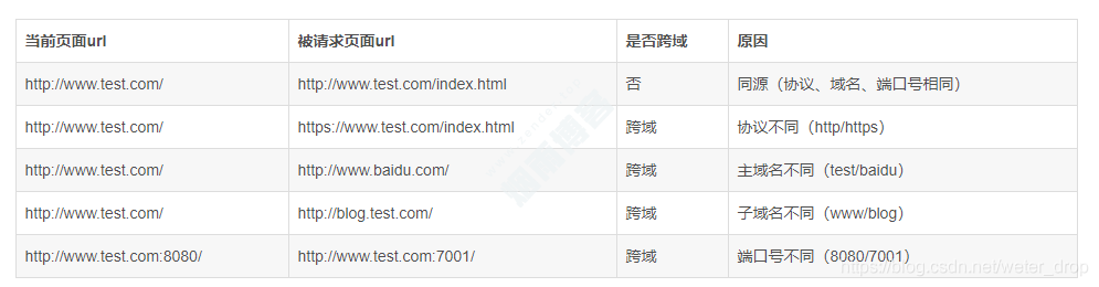 当一个请求url的协议、域名、端口三者之间任意一个与当前页面url不同即为跨域